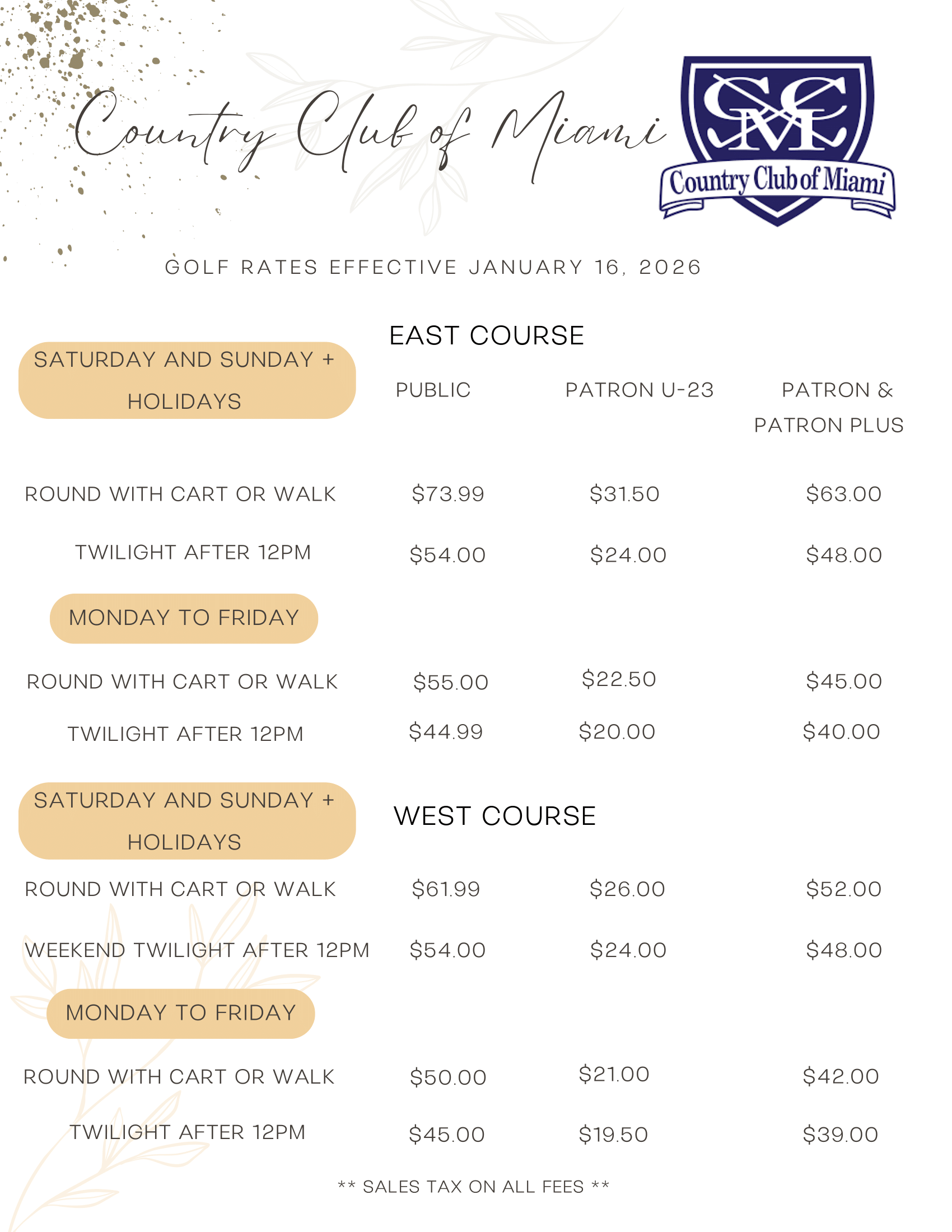 GOLF RATES EFFECTIVE J A N U A R Y 1 6, 2 0 2 6